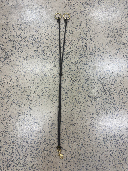 Black braided poly rope with brass plated hardware.