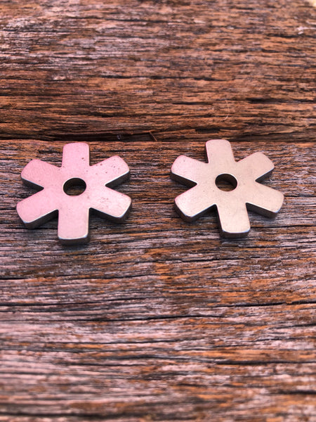 One pair of stainless steel brushed Dutton spur rowels, pins and cotter pins included.