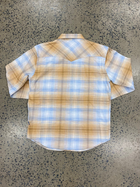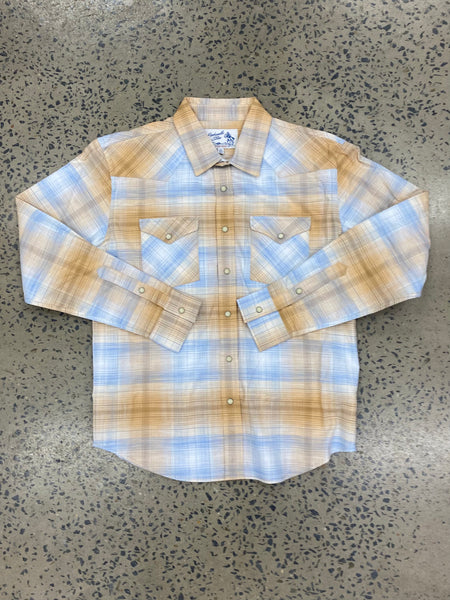 Panhandle select men's long sleeved western shirt with double pockets and snap buttons. This shirt is 97% Cotton & 3% Spandex. These shirts a great fitting, have long sleeves and long tails.