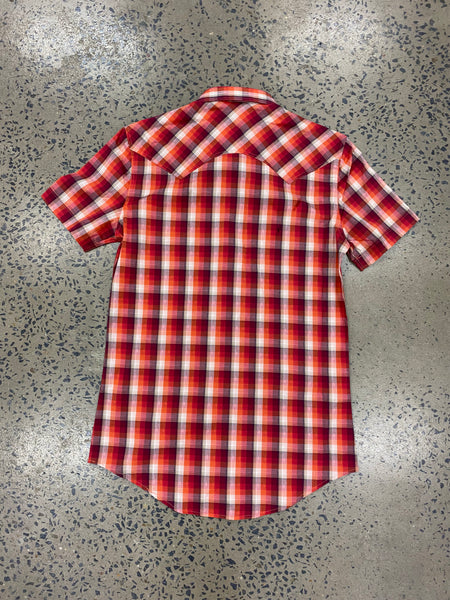 Rock and Roll men's short sleeved western shirt. These shirts a great fitting, have short sleeves and long tails. Full button down with snap buttons and two top pockets. 97% Polyester & 3% Spandex.