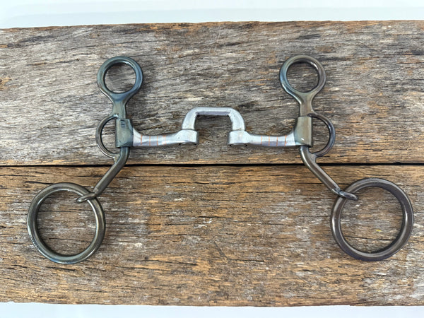 Dutton 'OC' Old Cowboy Bit featuring a short shank with a large loose ring for pre-signal rein slide. Low correctional port mouthpiece with copper inlaid bars.