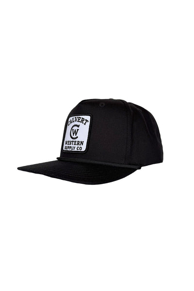 The Branded cap in black features a classic embroidered patch and a black rope.