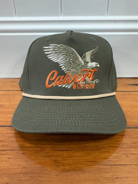 - Embroidered eagle + Calvert Western logo